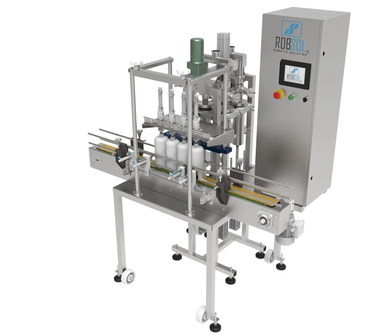 Nuestro sistema de tapado lineal tapa entre 60 y 70 botellas por minuto, siendo eficiente, versátil y confiable. Está diseñado para tapas roscas de cualquier medida y variedad de tipos, como tapa tipo pistola, tapa cremera, tapa estándar de 28 milímetros, tapa push pull, entre otras. Sin embargo, es importante tener en cuenta que no es compatible con todos los tipos de envases. Si tienes dudas sobre la compatibilidad con tu envase, contáctanos y te asesoraremos para encontrar la máquina que se ajuste a tus necesidades.