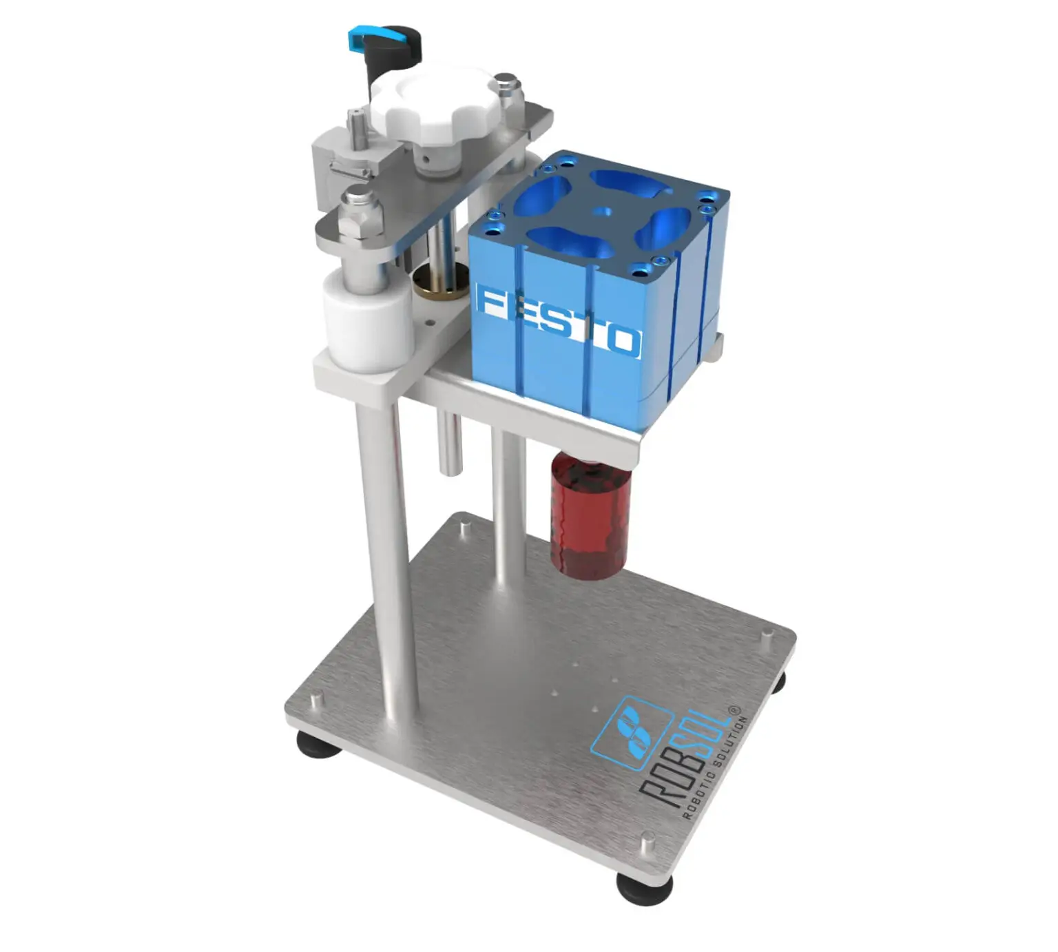 Grafadora neumática para viales de inyección compacta liviana y efectiva para medianas producciones con excelentes acabados.